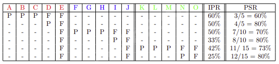 denoted by K-O. Their exam results (Pass or Fail) are given in Table 2. We observe that the IPRs vary between 60% and 25% are steadily decreasing. These IPRs, however, do not tell the full story.